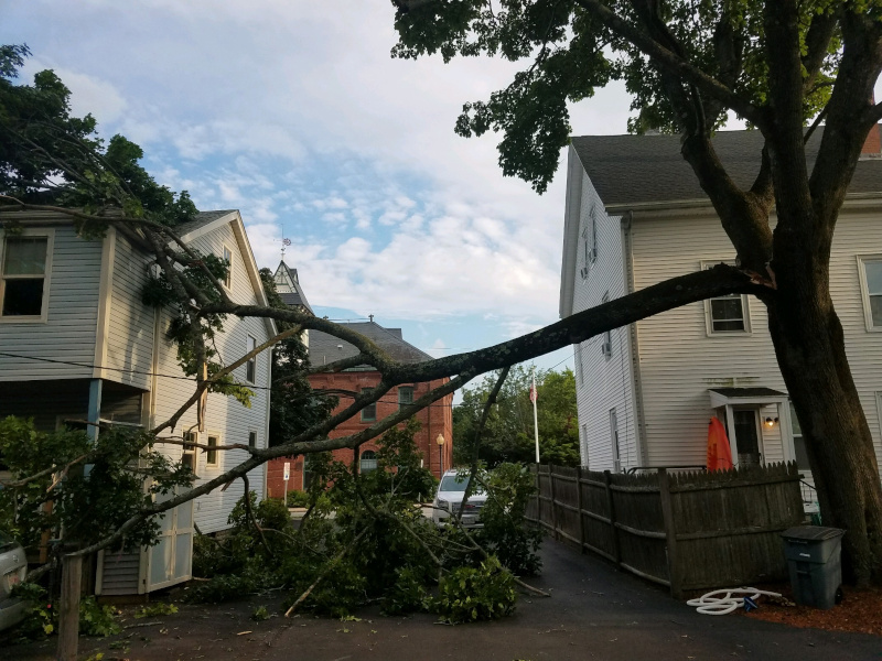 We responded to this downed tree during the recent high windstorm in Billerica, MA. We can remove damaged trees in any situation that is caused by our New England weather.